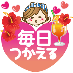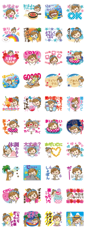 海やリゾート…夏気分満載のさわやかスタンプです♥毎日使える日常言葉から彼氏(カップル)や家族へのラブラブ/気づかい言葉まで♥気分を上げて〜暑い夏をのりきりましょ♪