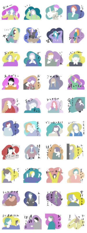 可愛くておしゃれな女の子達スタンプ。高校生、大学生、社会人、主婦の方でも使いやすい日常会話。シュールな感じも◎人気の女性達シリーズ。ポップでカラフル、レトロ◎