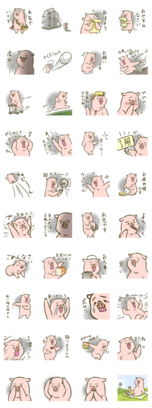 ぶたの世界。16 スタンプに書いてある文字一覧