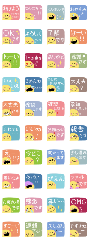 大人女子が毎日使えるゆるかわいいスマイル表情顔文字敬語 挨拶スタンプ 仕事 連絡 ママ友 丁寧言葉 ぴえん デカ文字 ハート ふきだし 英語 万能 春夏秋冬 絵文字も販売