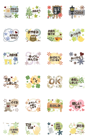 動く大人の毎日スタンプ スタンプに書いてある文字一覧