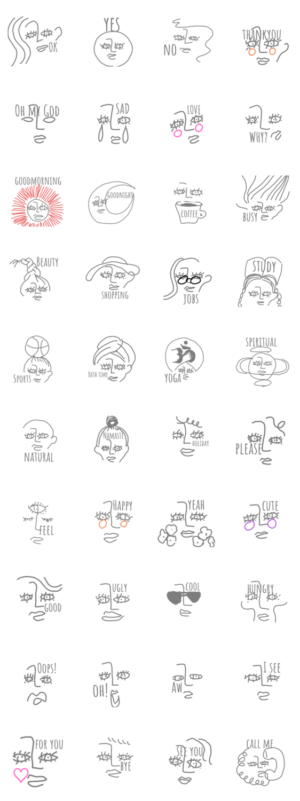 オシャレなゆるい顔のスタンプです。ocho より発売