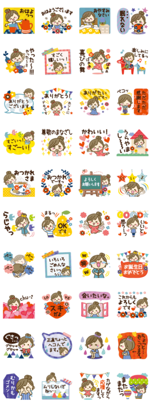 明るい北欧雑貨風デザインで日常で使いやすい素直な言葉を表現♥感謝のキモチや気づかい,いろんな感情や愛の言葉などなど…。友達、家族や恋人の毎日のやりとりにぜひ♥