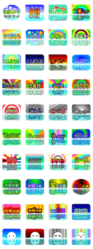 水面鏡モチーフのシンプルスタンプです、了解、おつかれさま、なるほど、いいね、初耳、さすが、賛成、暑い寒い等日常会話や健康安全必勝合格祈願を大文字で華麗に送ります