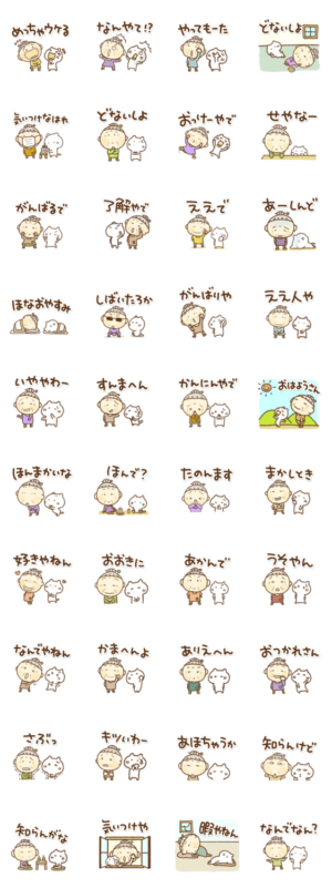 デフォルメされたおばあちゃんとねこのスタンプですゆるーいスタンプをラインに飾って癒されましょう!