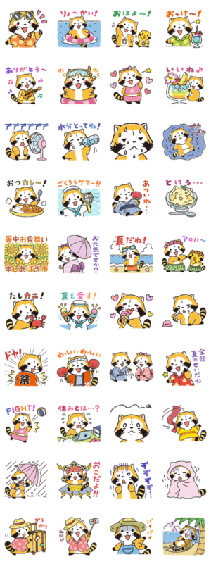 ラスカルと夏休みをエンジョイしよう!夏にぴったりなシチュエーションをたくさん集めました♪ 暑中見舞いや遊びのお誘い、日常のトークなどにドンドン使ってね☆