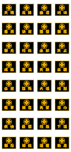 家紋入り二文字侍言葉 丸に四つ目 スタンプ画像一覧