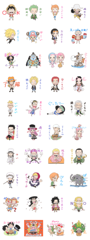 日常にONE PIECE(ワンピース)の世界観を、使いやすい言葉で構成しました。季節のイベントスタンプもありますよ。