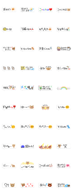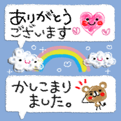 控えめサイズで場所をとらない、 半分が敬語・どなたにでも使いやすいスタンプセットです。クレヨンタッチの手描き感がゆる可愛い♪ようこ より発売