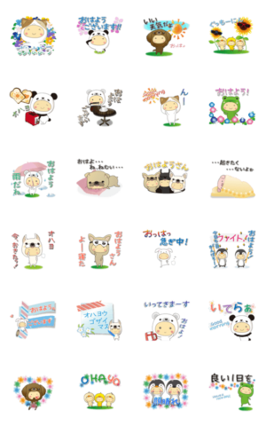 きぐるみ団、いちにちの始まり「おはようスタンプ」です。その日の気持ちや気分に合わせて使えます♪