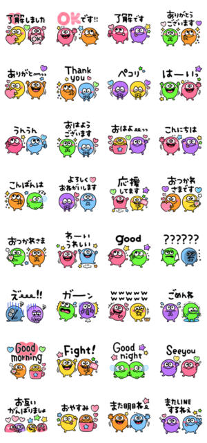 カラフルモンスターのみんなが使える無難な日常会話セットです。