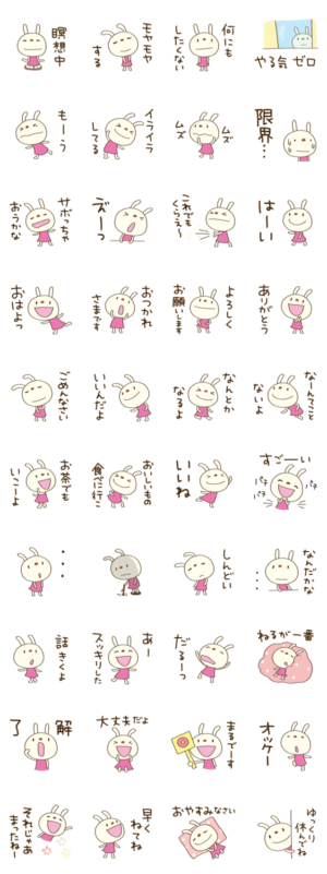 心モヤモヤ☆てるてるうさぎ スタンプに書いてある文字一覧