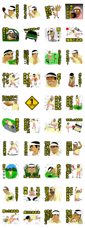ゴルフ好きのオヤジによる、いちいちリアクションの激しいスタンプ集ライノブック より発売