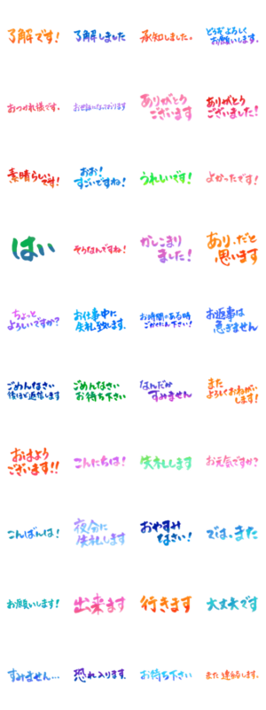 丁寧いろどり文字。了解です、おつかれ様です、よかったです、ちょっとよろしいですか?承知しました。日常の返答と挨拶を省スペースの横長で✨使いやすい文字集その②