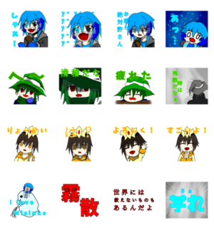 You Tubeで活動中の霧_Mistの迷言とオリキャラ、ミスト、バルバトス、パイモンのスタンプです。soukoku.gyouza より発売