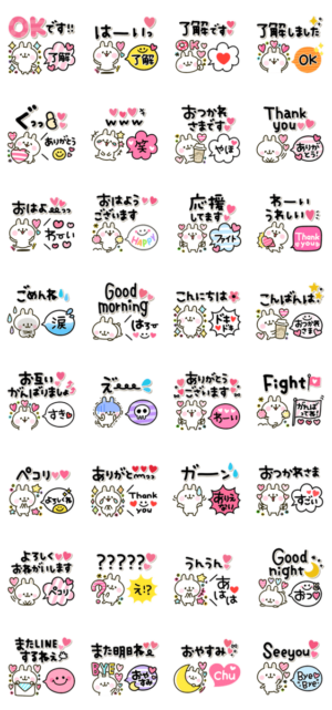 毎日使えるカラフルうさぎの可愛い♡みんなが使える無難な日常言葉セットです。