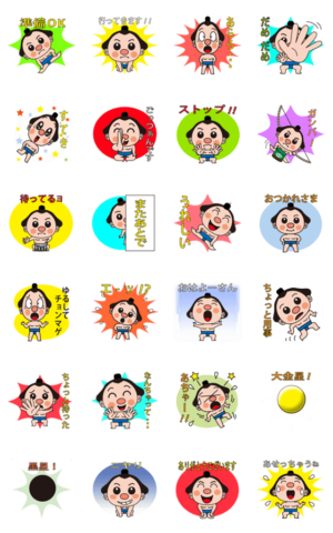 お相撲さんのかわいいスタンプです。シコふんじゃってご挨拶。金田常幸 より発売