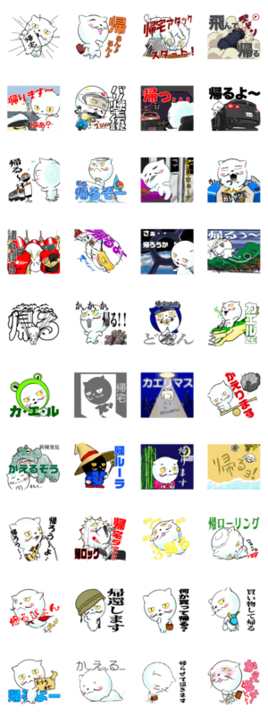 あの人とのLINEのやり取りは、今では「帰ります」ただそれだけ。そんなマンネリなやり取りに彩を添える、40種類の帰るスタンプをご活用ください。