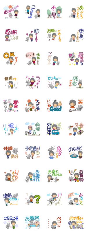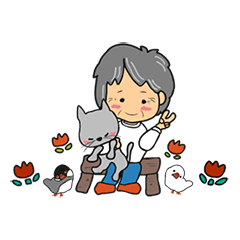 明るく元気なおばあさんとかわいい子猫!小鳥たちも一緒に幸せで平凡な楽しい毎日。日常生活で使えるシニア向けの大きな文字スタンプです!よかったら使ってくださいね。