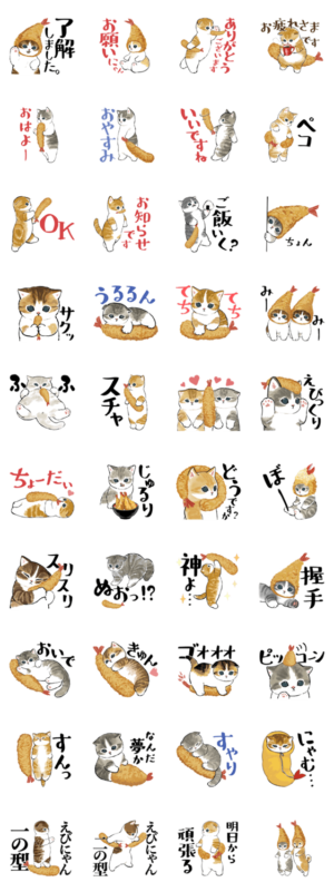 エビフライが好きすぎる、シュールなにゃんこのスタンプです。