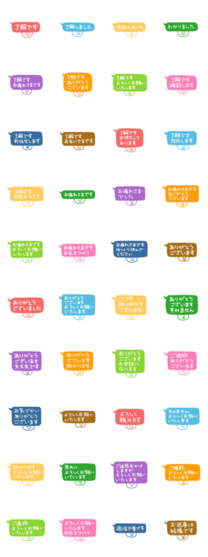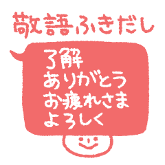 了解・ありがとう・お疲れさま・よろしくの組み合わせをおしゃべりするふきだしぼうずです。敬語で使いやすいです。モリタ より発売
