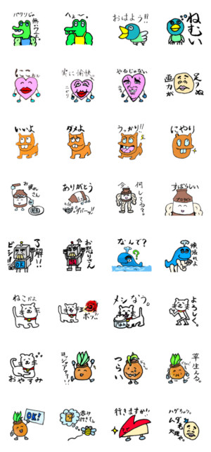 私の脳内で活動されている住人達を具現化してスタンプにしたものです。画力がないのは百も承知。さまざまなシチュエーションで使っていただけるとホッコリします。
