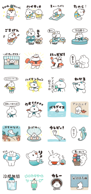 サマーうさちゃん その4 スタンプに書いてある文字一覧