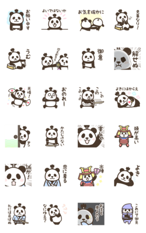 パンダンミニの動く武士語スタンプです。武士や侍、時代劇好きにおすすめ。何気に毎日、日常で使えます