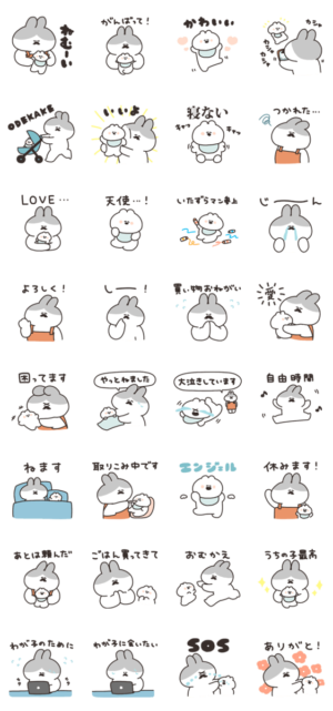 小さいうさぎとお父さんのスタンプです。ナポリ より発売