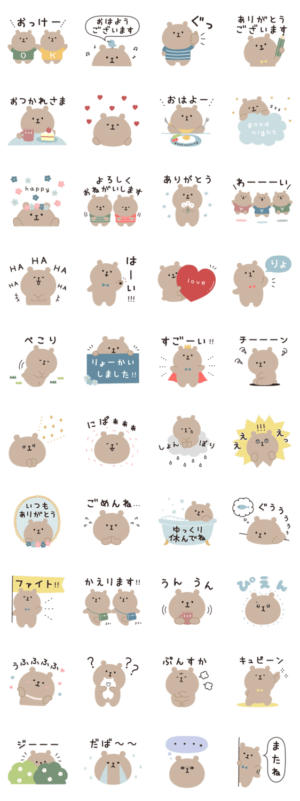 くまのぬいぐるみスタンプ。 スタンプに書いてある文字一覧
