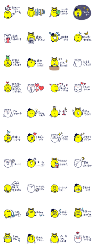 イェローなヒトたちが丁寧に伝えます。ベーシックなのでいろんなシーンで使える便利なスタンプです。シロクマさんもちょっと参加です♪