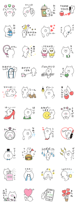 ゆるいしろくまさんの日常会話スタンプです。おしゃれなコスメやハートがいっぱい!