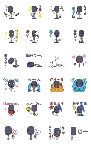 マイクのキャラクターのアニメーションスタンプです。コミカルで可愛いこの子が、あなたの会話のお手伝いをします。