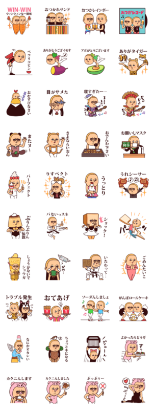 ダジャレになっても息ぴったり。パン/ポテト/野菜/鳥/たぬき/りす/なぞなぞ酢豚/お金ぴえん…他。家族や友達と日常のやりとりに、シュールな大人のダジャレスタンプ。