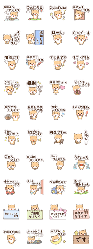 茶色い柴犬のスタンプです。丁寧な言葉や敬語を集めた、優しい、あたたかみのあるスタンプです。いぬ好きな方にぜひ。【かたこスタンプ】
