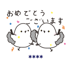 雪の妖精シマエナガが丁寧な挨拶をします。お好きな文字を6文字まで入れられます。