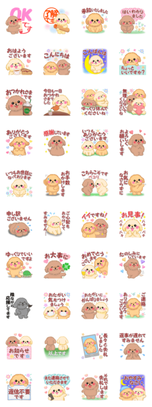 敬語で気づかいのできる、かわいいトイプードルのスタンプです。