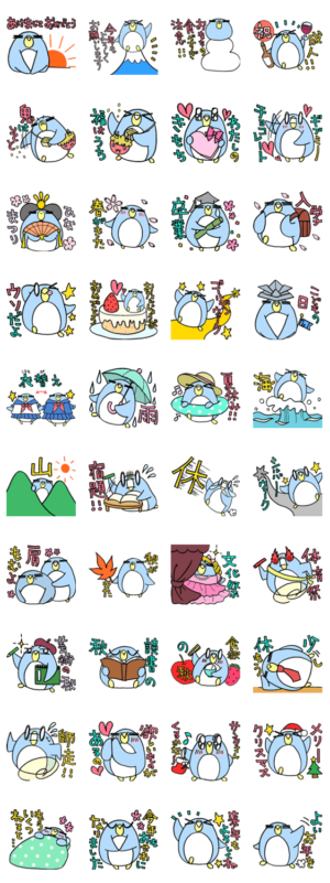ペンギンのペンさんの一年中使える行事スタンプ。明るくて元気が出ます!