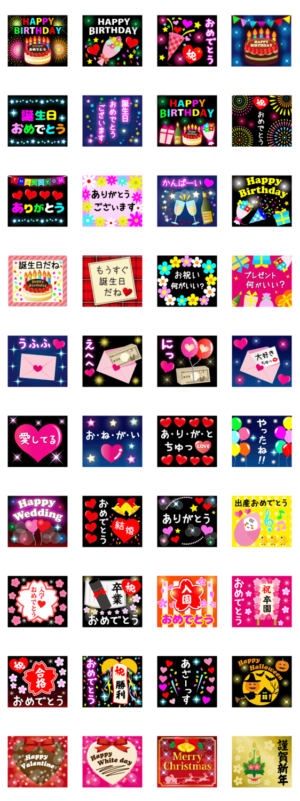 お誕生日の人に送ることで喜ばれますが、それ以外のお祝い事においても使えるとても便利なスタンプです。