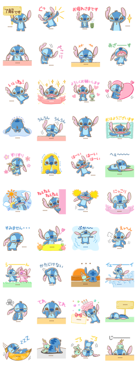大好きなスティッチの姿にほっこりしてください。クスッと笑えるスタンプも良いですよ。