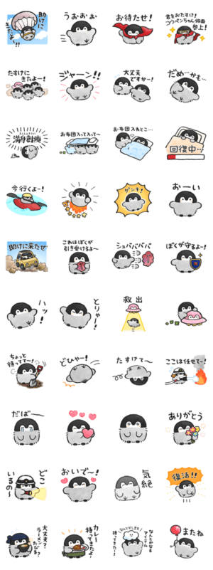 ピンチに直面する人々を助けたり褒めたり労ったりちやほやしてくれるコウペンちゃんたちのスタンプです。