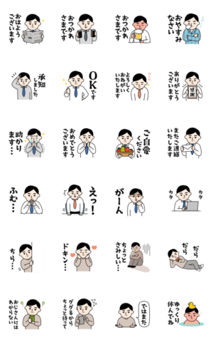 毎日の挨拶、会社の人や家族の連絡にも使えて便利♪シュールなおじさんの敬語多めのアニメーションスタンプです◎