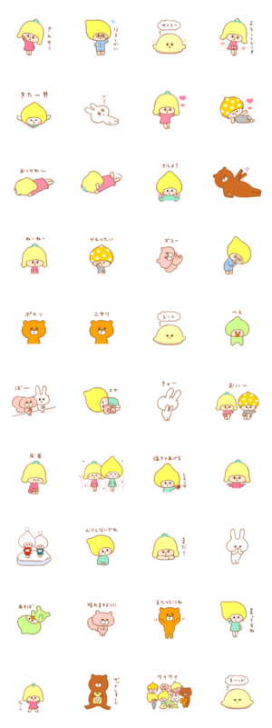 レモン姉妹になかまが増えました。レモン兄弟と謎のレモンケーキちゃんが加わって大人数で楽しいスタンプになりました。Yumika より発売