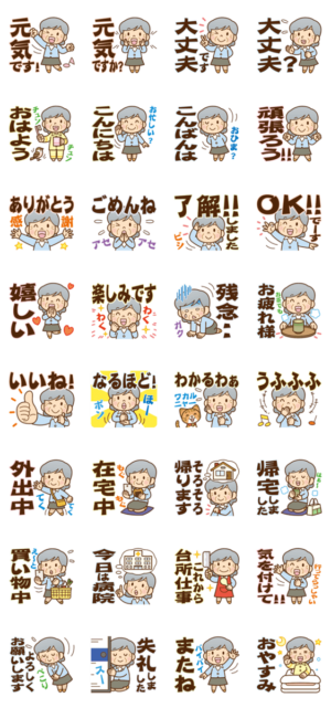 かわいいおばあちゃんの日常挨拶です。「大きく、見やすく、選びやすい」を目指して作ってみました。