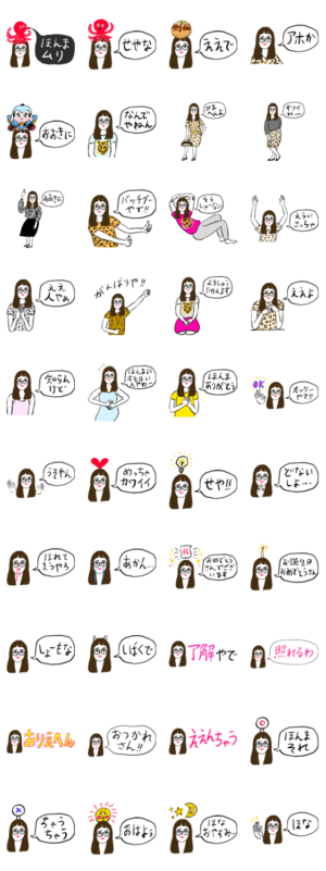 【関西弁】ロングぱっつん丸メガネ スタンプに書いてある文字一覧