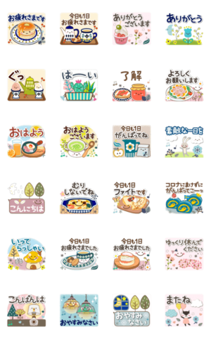 一年中使える動く大人の北欧風スタンプ スタンプに書いてある文字一覧