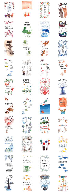 お洒落で可愛いイラストが気に入っています。絵本にありそうな柔らかいタッチのイラストは誰にでも使いやすいので大好きなスタンプです。