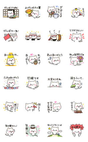 デフォルメされたしろねこのスタンプです。ゆるくてかわいい雰囲気のスタンプをラインに飾って癒されましょう。