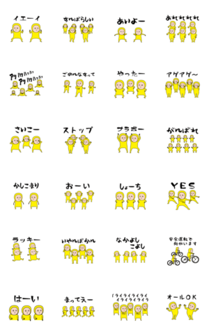 ダサかわ(黄色いタイツのおチビ編2) スタンプに書いてある文字一覧
