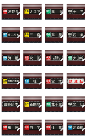 大阪や京都、兵庫の関西圏の通勤電車の表示機器をイメージ。日本の鉄道車両の部品をカスタマイズできます。列車の行き先を書き込むともっとリアルに。 現在この商品は一部のスマートフォン版LINE 10.3.0以上のトークルームでのみ使用できます。動作環境の最新情報はヘルプをご確認ください。ヨシダアカリ より発売